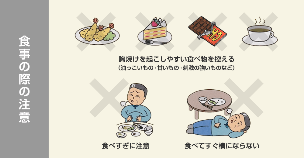 逆流性食道炎の発症には生活習慣も大きく関わります。下記の7つの生活習慣を心がけてください。
